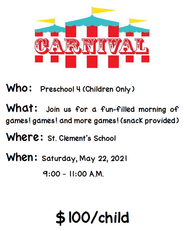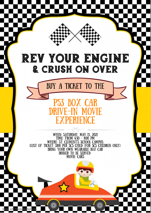 Bring your own wearable, cardboard box car to this one-of-a-kind event! Lots of fun will be had, as your child enjoys dinner and a movie on the St. Clement's School Campus.
